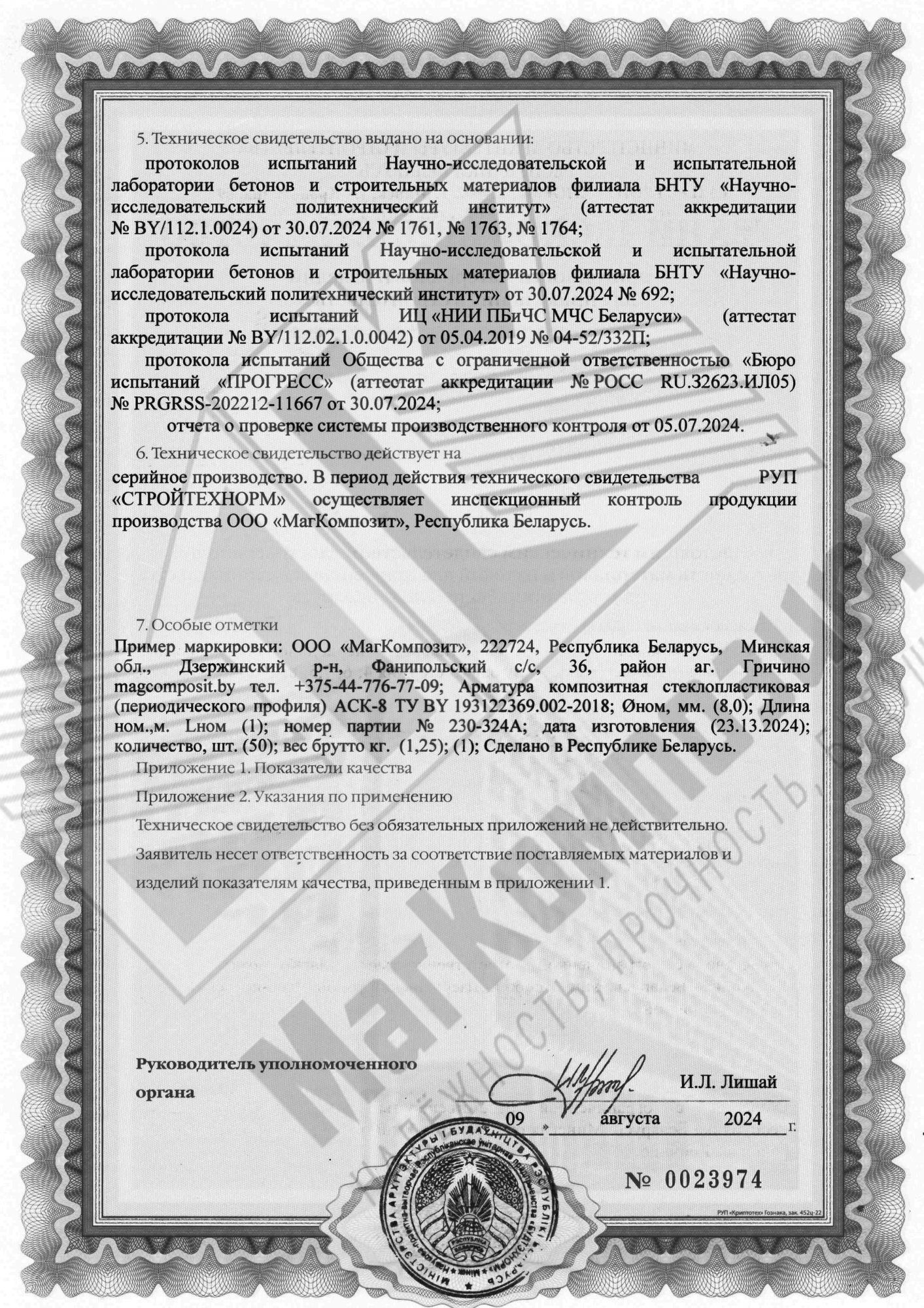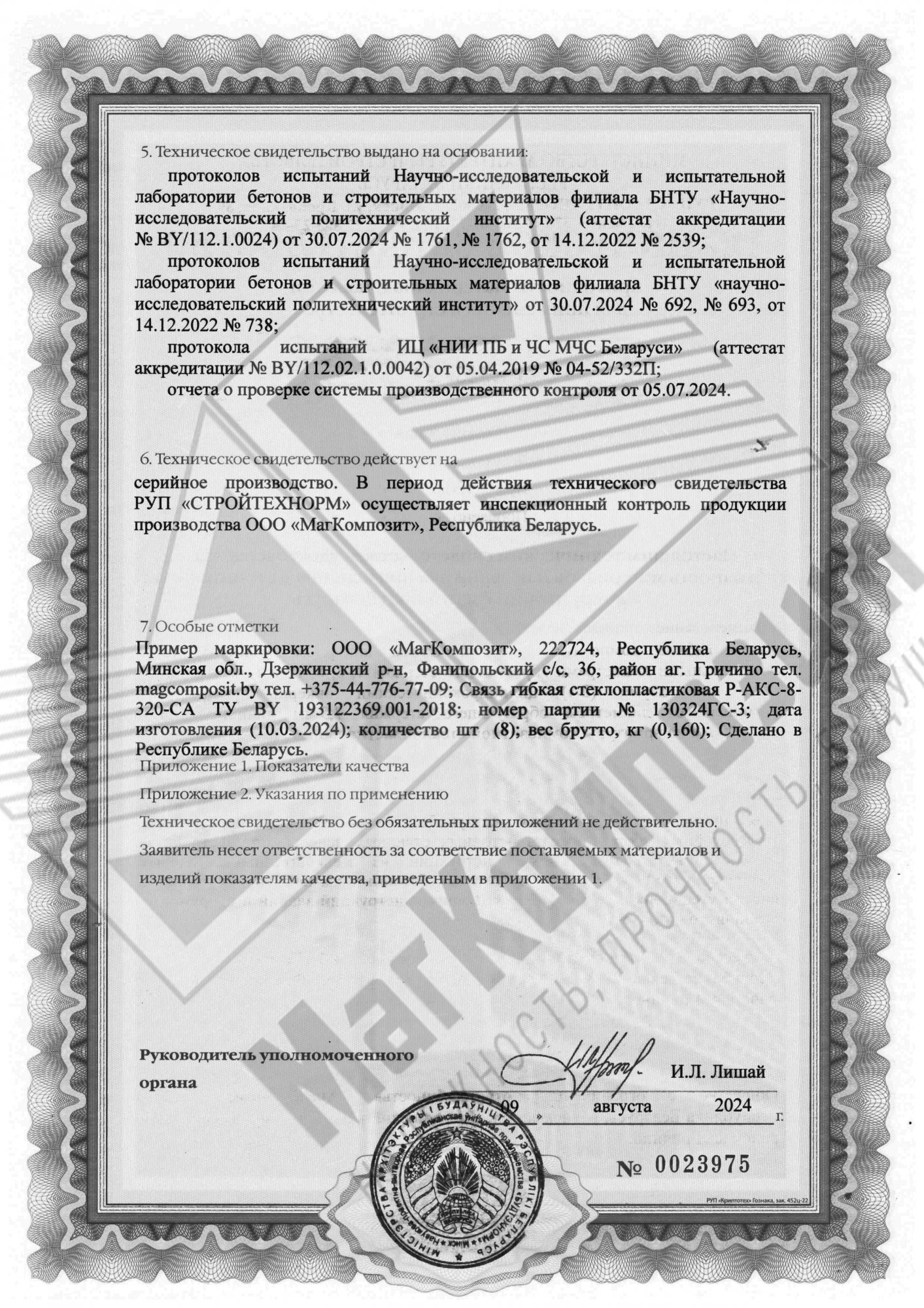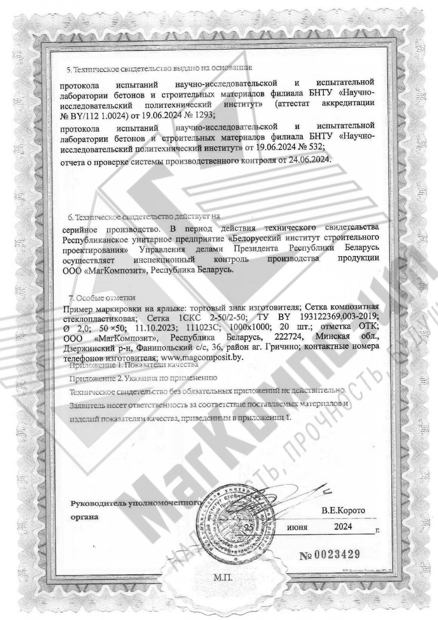 Сертификат продукции собственного производства